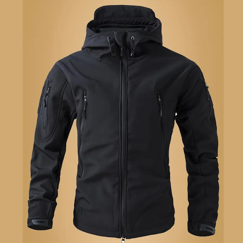 Giacca Hoodie Tattica Slim-Fit per Uomo | Soft Shell | Più Tasche | Nero Puro